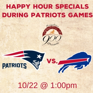 Are you looking for a great bar to watch the Patriots game in Manchester, NH? Look no further than 900 Degrees! During the 2023 season, 900 Degrees Neapolitan is offering our Happy Hour specials, typically reserved for Monday thru Friday, during every Patriots game. So, come watch the Patriots game at our bar and enjoy $4.50 select draft beers and $5.95 house wine, as well as some delicious Happy Hour food specials.