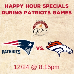 Are you looking for a great bar to watch the Patriots game in Manchester, NH? Look no further than 900 Degrees! During the 2023 season, 900 Degrees Neapolitan is offering our Happy Hour specials, typically reserved for Monday thru Friday, during every Patriots game. So, come watch the Patriots game at our bar and enjoy $4.50 select draft beers and $5.95 house wine, as well as some delicious Happy Hour food specials.